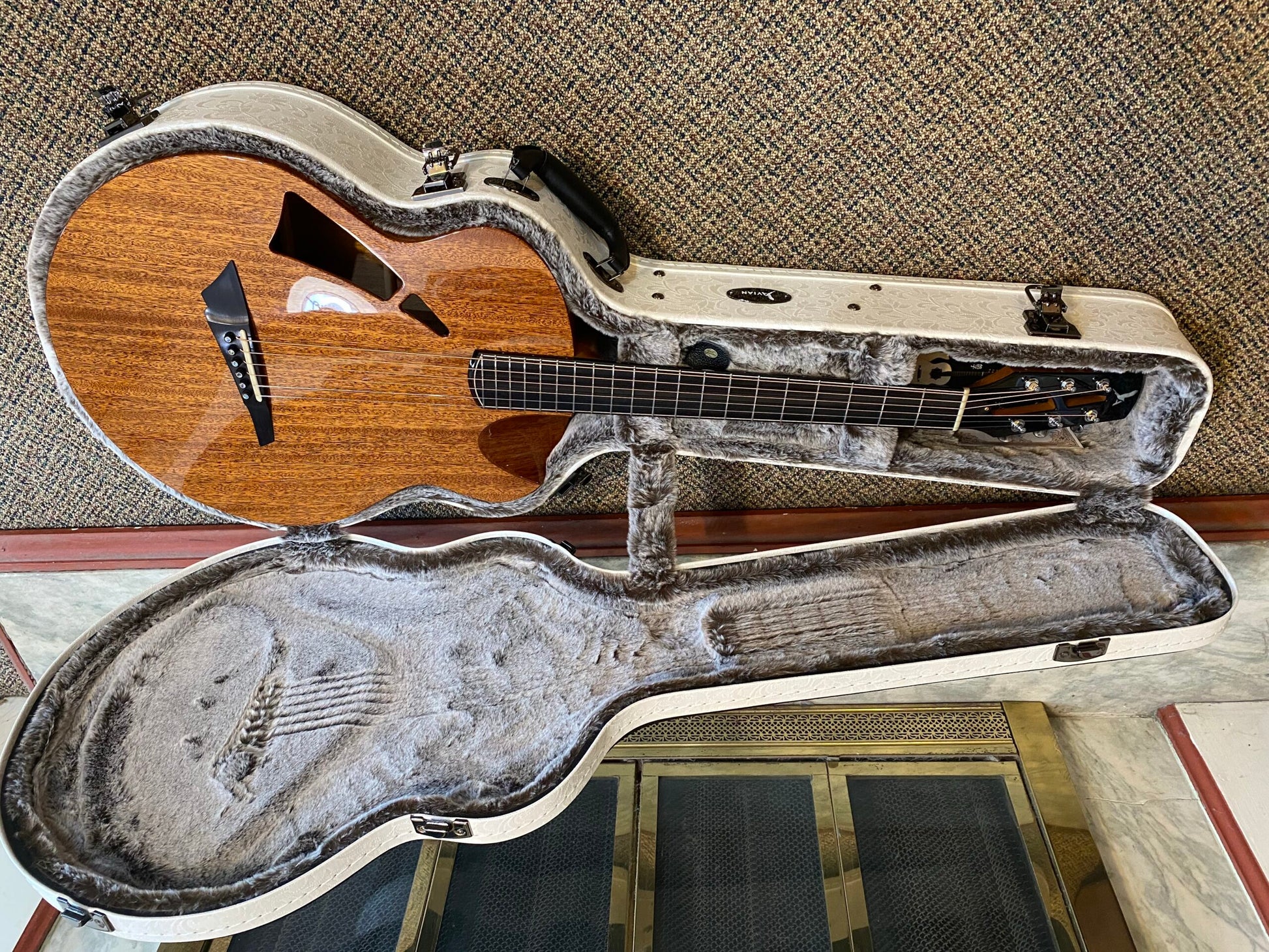 - Mahogany body, ebony fingerboard and bridge